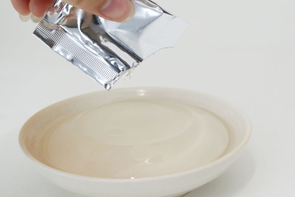 付属にカラメルソースがついていますが、なんとこちらも透明!全くプリンの要素がない見た目なのに味はしっかりプリンというまさに脳がバグを起こしてしまいそうな商品です😳