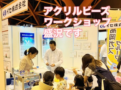 コロナ禍で使われていたアクリルボードをアップサイクルしたビーズを詰めるワークショップが盛況でした。