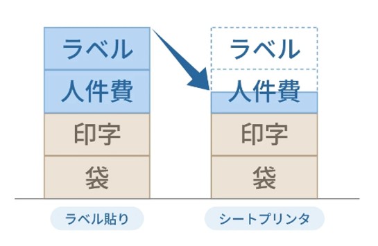 ラベル貼りから空袋に直接印字することで、ラベルを無くすだけでなく、ラベルを貼る工程も削減できます。